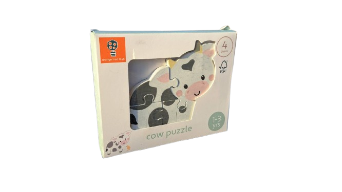 - Име: Дървен пъзел в кутия крава/трактор 4 части