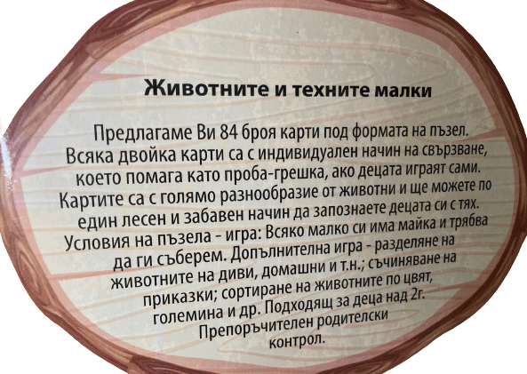 - Име: Карти пъзел-ЖИВОТНИТЕ и ТЕХНИТЕ МАЛКИ 2+ години