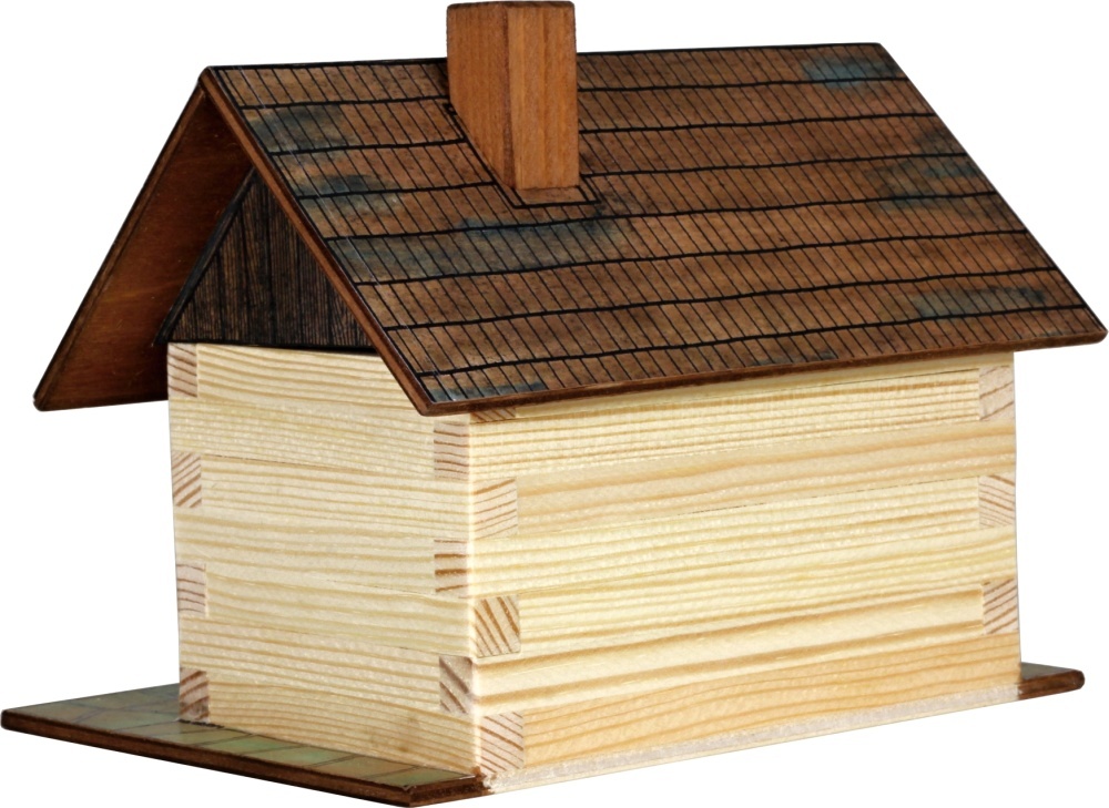 Комплект-конструктор за изграждане на миниатюрна традиционна сграда от истински дървени трупи. Този 3D комплект за дърводелство се предлага с дървени блокове с различни дължини, строителни части за конструкцията на покрив, прозорци, врати, други компоненти и стъпка по стъпка инструкции за диаграма, т.е. пиктограми, със символи за отделни работни действия.Необходимо е лепило за дърво,което не е включено в комплекта.