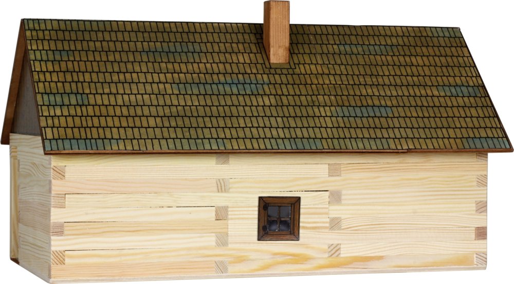 Комплект-конструктор за изграждане на миниатюрна традиционна сграда от истински дървени трупи. Този 3D комплект за дърводелство се предлага с дървени блокове с различни дължини, строителни части за конструкцията на покрив, прозорци, врати, други компоненти и стъпка по стъпка инструкции за диаграма, т.е. пиктограми, със символи за отделни работни действия.Необходимо е лепило за дърво,което не е включено в комплекта.