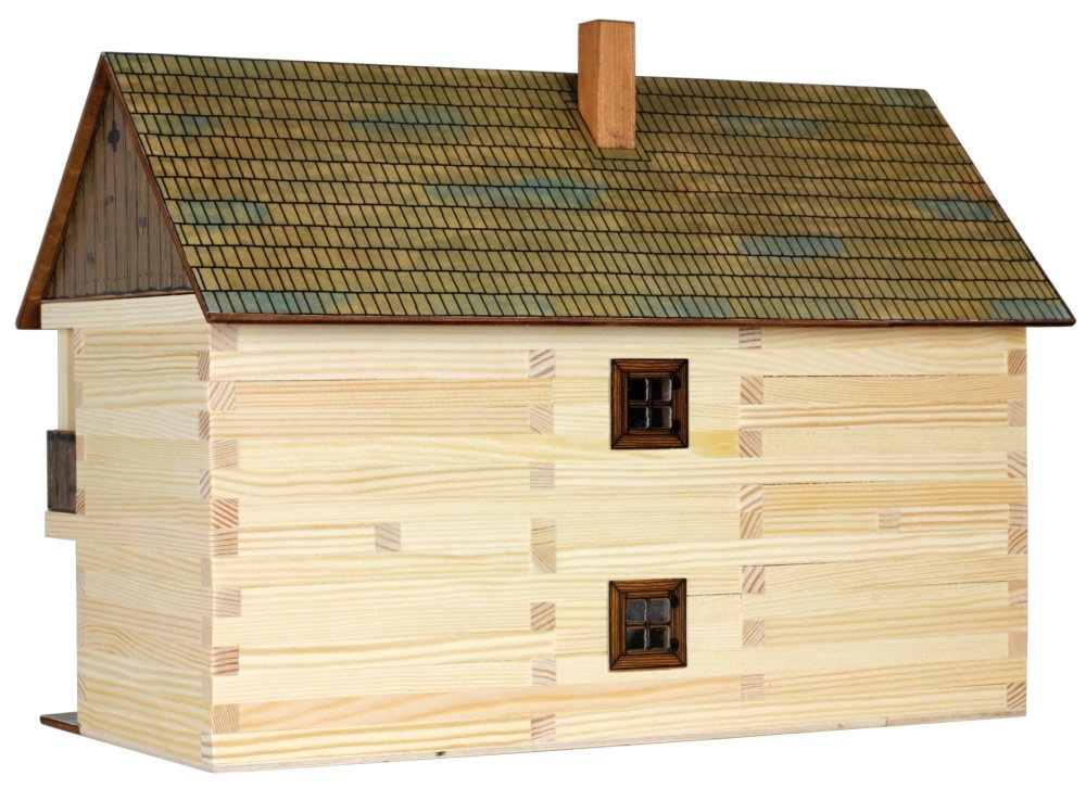 Комплект-конструктор за изграждане на миниатюрна традиционна сграда от истински дървени трупи. Този 3D комплект за дърводелство се предлага с дървени блокове с различни дължини, строителни части за конструкцията на покрив, прозорци, врати, други компоненти и стъпка по стъпка инструкции за диаграма, т.е. пиктограми, със символи за отделни работни действия.Необходимо е лепило за дърво,което не е включено в комплекта.