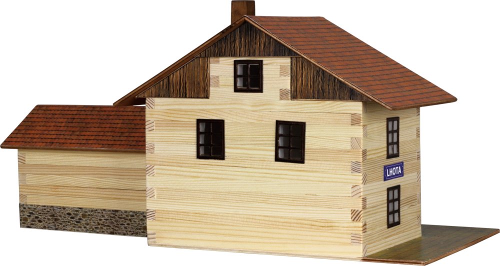 Комплект-конструктор за изграждане на миниатюрна традиционна сграда от истински дървени трупи. Този 3D комплект за дърводелство се предлага с дървени блокове с различни дължини, строителни части за конструкцията на покрив, прозорци, врати, други компоненти и стъпка по стъпка инструкции за диаграма, т.е. пиктограми, със символи за отделни работни действия.Необходимо е лепило за дърво,което не е включено в комплекта.