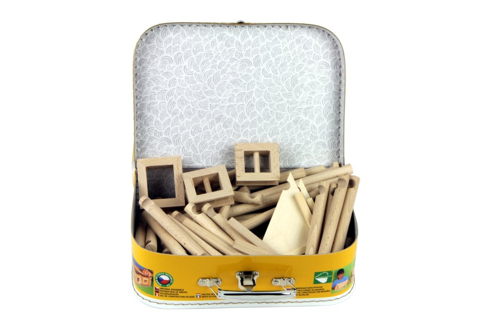 Комплект-конструктор VARIO включва сглобени и демонтирани модели на сгради, изработени от букови трупи с диаметър 15 мм, с дължини от 28 до 250 мм, с полукръгли ключалки. Те са съвместими помежду си и ви позволяват да изградите десетки варианти на конструкциите. Прозорците и вратите са залепени заедно от масивните профили, вмъкнати в стените на сградите.